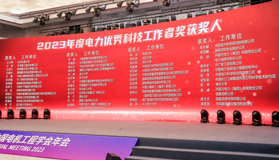 2023年12月6日,中国电机工程学会年会在南京召开,年会主题为“安全低碳 智能 经济 优质构建新型电力系统”。主会场开展特邀主旨报告、技术论坛、专题研讨会和论文宣讲等多种方式进行交流,并组织了顾毓琇电机工程奖、电力科学技术人物奖、电力科学技术进步奖等颁奖仪式。