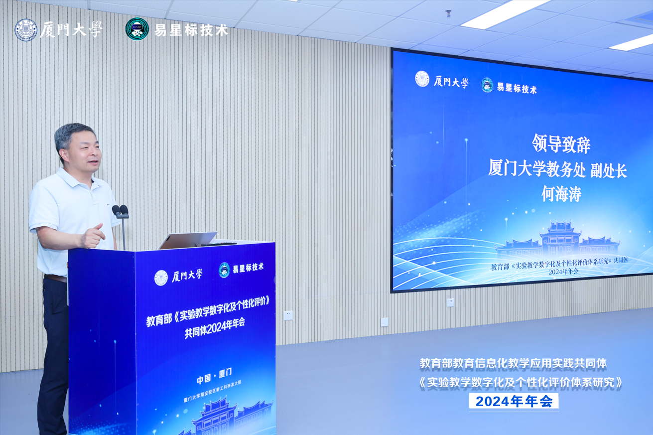 厦门大学教务处副处长何海涛致开幕词,对来自全国各地的专家们表示热烈地欢迎,向大家介绍了厦门大学在信息化、数字化领域的探索,并表示,厦门大学未来将与兄弟院校一起共同推进教育数字化的落地。