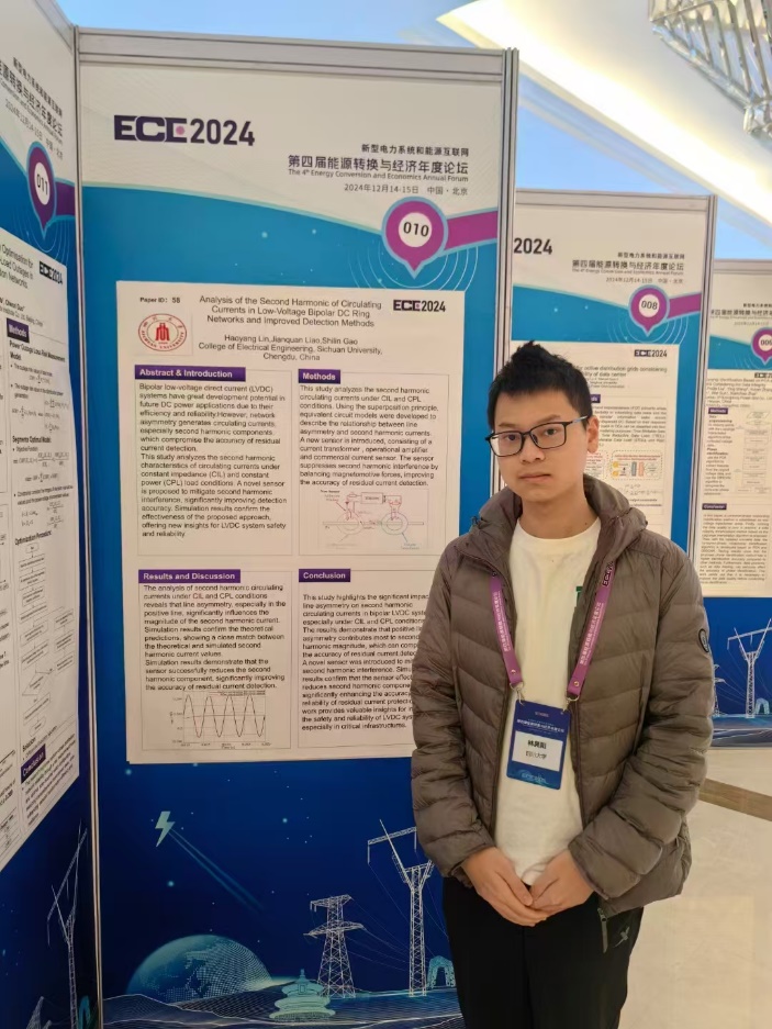 本科生林昊阳发表会议论文《Analysis of the Second Harmonic of Circulating Currents in Low-Voltage Bipolar DC Ring Networks and Improved Detection Methods》,本科生王宇凡发表会议论文《Stochastic Planning of Energy Hub Considering Demand Response and Electric Vehicles with Stackelberg Game》,并在论坛上进行海报展示。