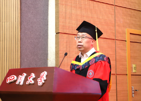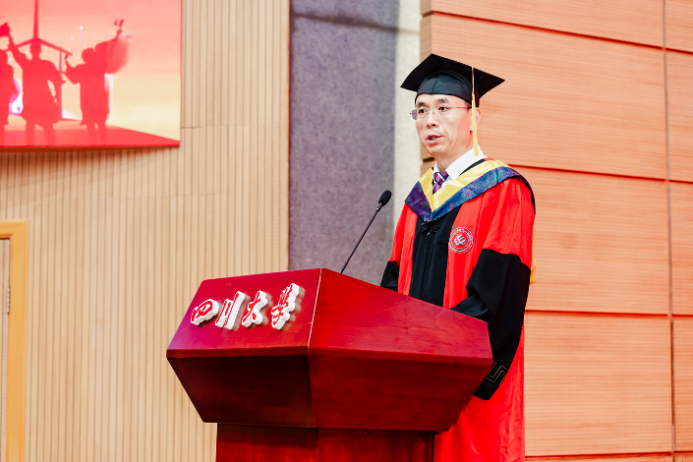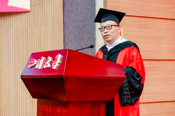 的全体毕业生顺利完成学业、走上新的人生征程表示祝贺。他在致辞中以2025的特殊寓意切入,希望大家始终充满爱党爱国爱川大的真挚情感。他借用学校法学教育创办人邵从恩老先生的名言“内本着良心,上看到国家,下看到百姓”,寄语毕业生要向善而行、向上而行、向人民而行。站在强国建设的关键点上,站在人生发展的转换点上,我们要永远与伟大时代同行,为MX动漫
