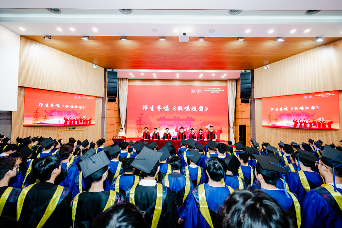 最后,全场师生和学生家长代表齐唱《歌唱祖国》,表达了对祖国的热爱和对未来的祝愿。