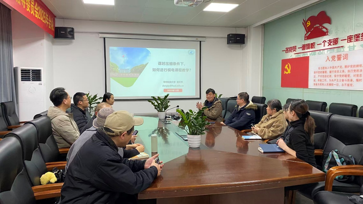 电工电子中心特邀华中科技大学邓天平教授开展主题为“课时压缩条件下,如何进行模电课程教学”的专题讲座。学院党委副书记、纪委书记、工会主席张英敏,中心党支部书记印月,中心主任沈晓东及中心教师代表参会。
