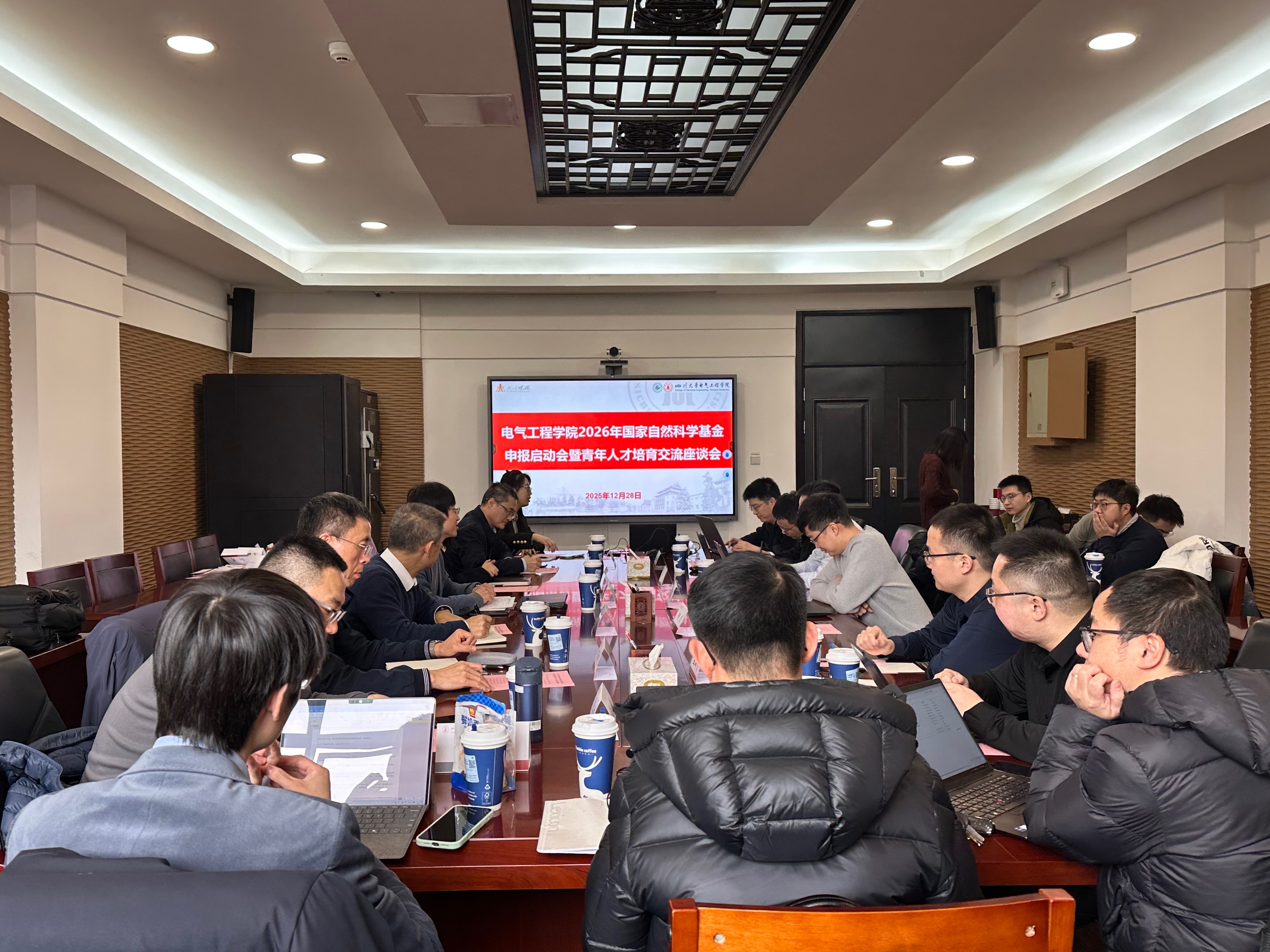 召开2026年国家自然科学基金申报动员会暨青年人才培育交流座谈会。学院党委书记赵昱辉、院长肖先勇,副院长汪颖,贾申利教授,重庆大学谢开贵教授,院长助理王栋以及学院青年教师代表参加会议。学校人才计划管理科科长敬沁竹莅临指导。会议由汪颖副院长主持。