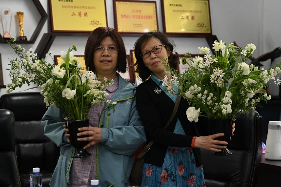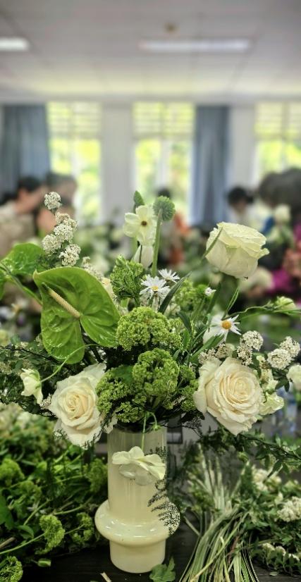 讲解结束后,老师们开始动手创作。大家认真修剪花枝、搭配色彩,不时相互交流,现场气氛轻松活跃。经过一个多小时的创作,各类插花作品陆续完成。大家充分发挥想象力,作品风格各异,有的简约雅致,有的色彩饱满,展现出对生活的热爱与用心的态度。大家纷纷表示,活动不仅让大家学到了插花技巧,感受到花艺魅力,也在忙碌工作之余放松了心情,增进了彼此间的交流与情谊。