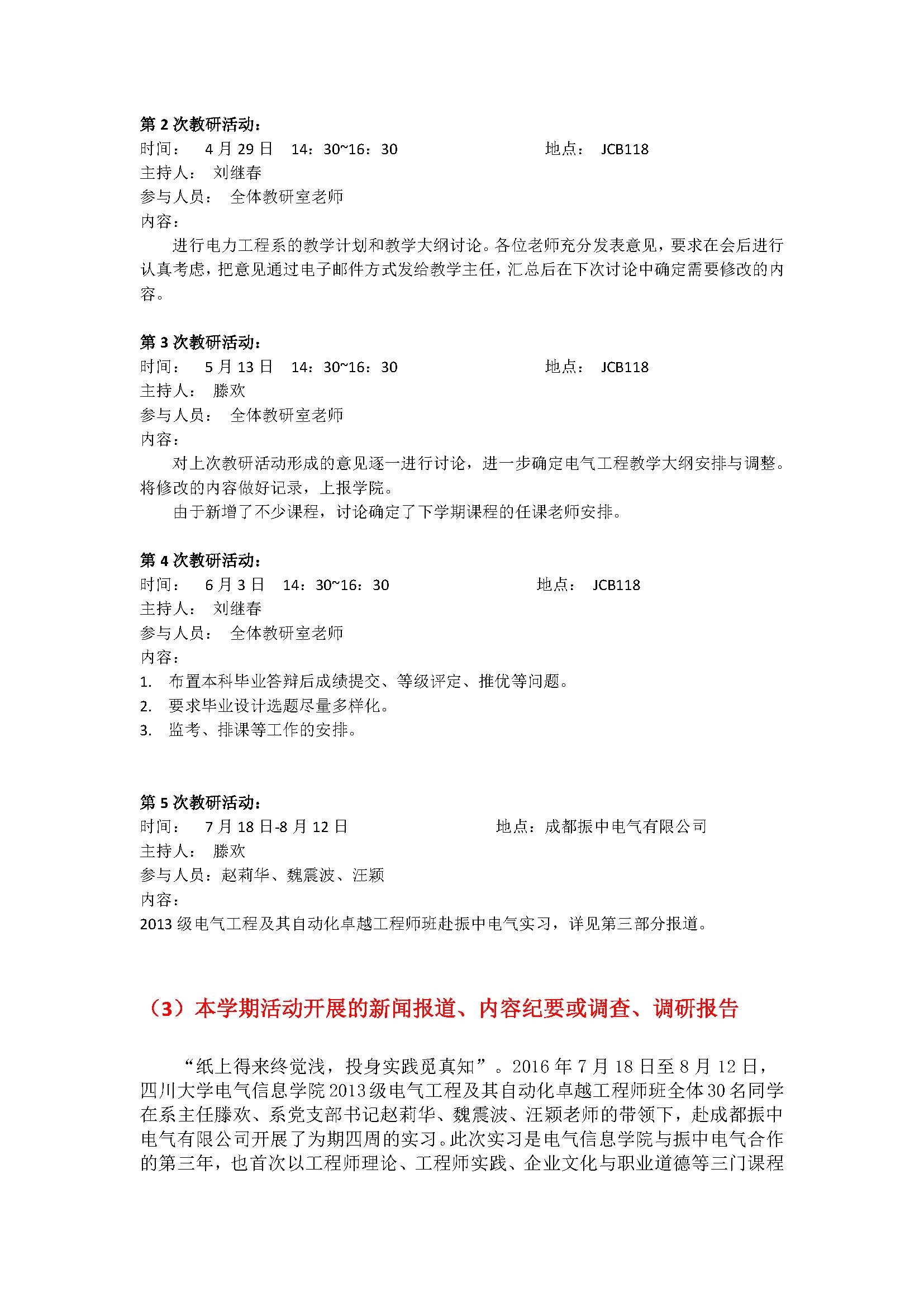 电气工程及其自动化2016年(春季学期)教学活动简报