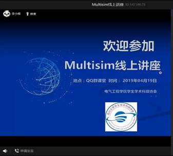 学生学术科技协会特邀请学院李小根老师为同学们开设Multisim线上特色讲座。2020年4月19日下午三点,讲座在QQ群课堂在线顺利进行,本次讲座深受学生欢迎,除了MX动漫