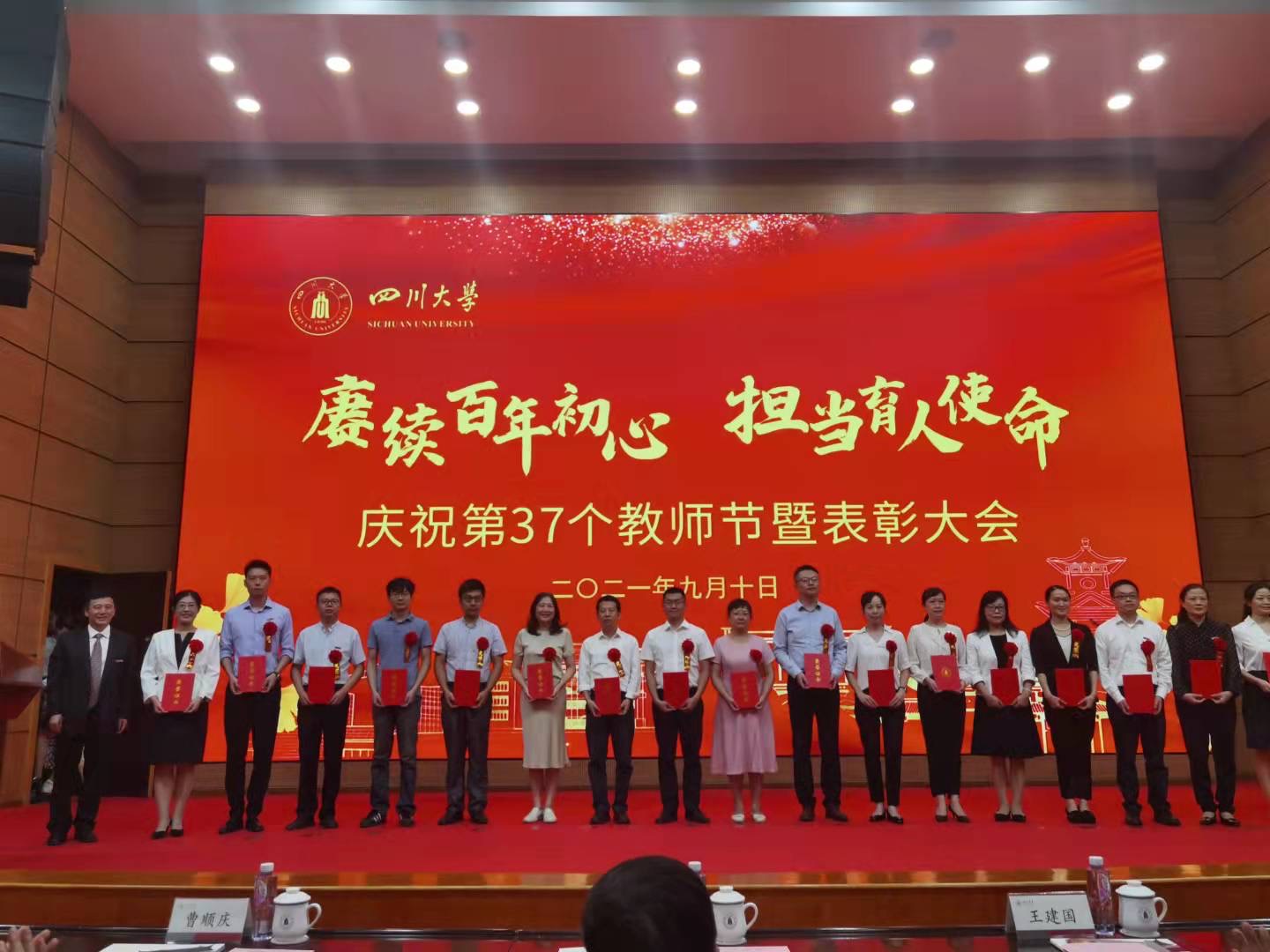 庆祝第37个教师节暨表彰大会,表彰荣获2021年四川省“最美教师”团队、2020年度学校“宝钢优秀教师”、2021年“先进集体”、“卓越教学奖”、“姜维平优秀教学奖”、“立德树人奖”、“未来教学名师奖”、“先进个人”等先进集体和教师。在本次表彰会上,学院有5位教师受到表彰,肖先勇教授获得“宝钢优秀教师”荣誉称号,赵莉华副教授获得“姜维平优秀教学奖”,刘俊勇教授、赵涛副教授、胡劼老师获得“MX动漫