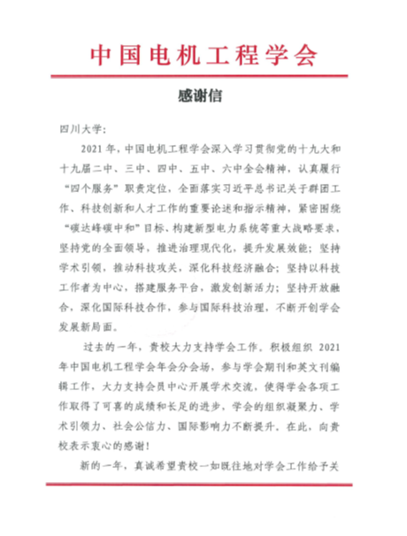2022年1月18日,中国电机工程学会发来感谢信,对MX动漫