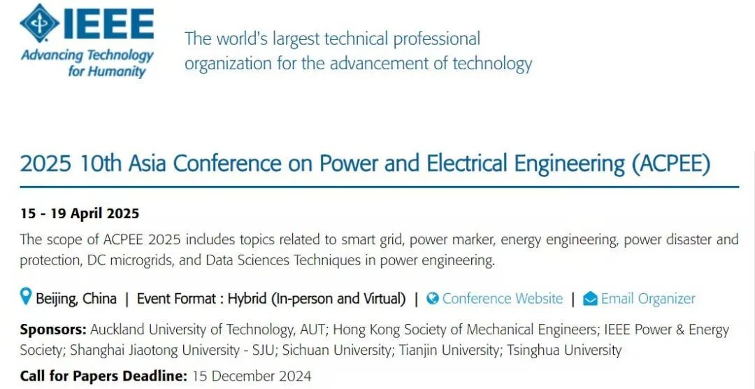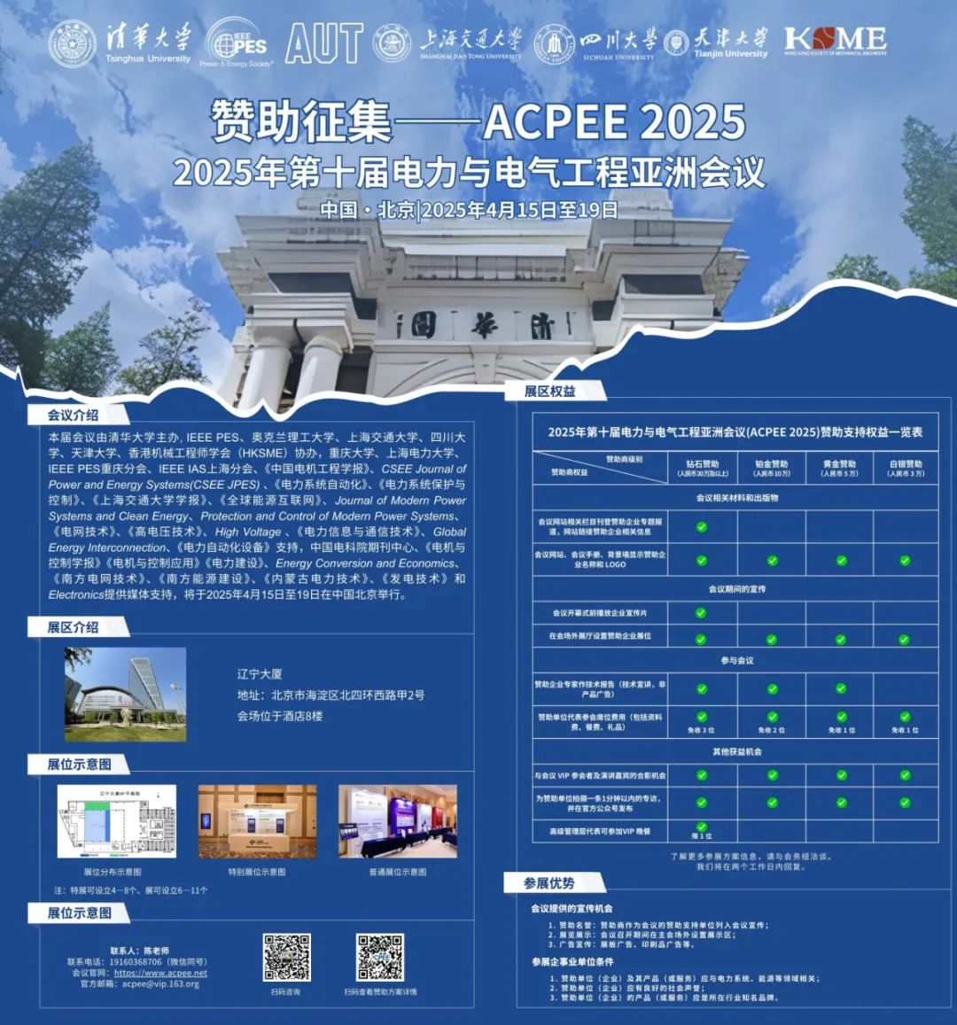 2025年第十届电力与电气工程亚洲会议(ACPEE 2025)将于2025年4月15日至19日在中国北京召开。会议是由清华大学主办, MX动漫