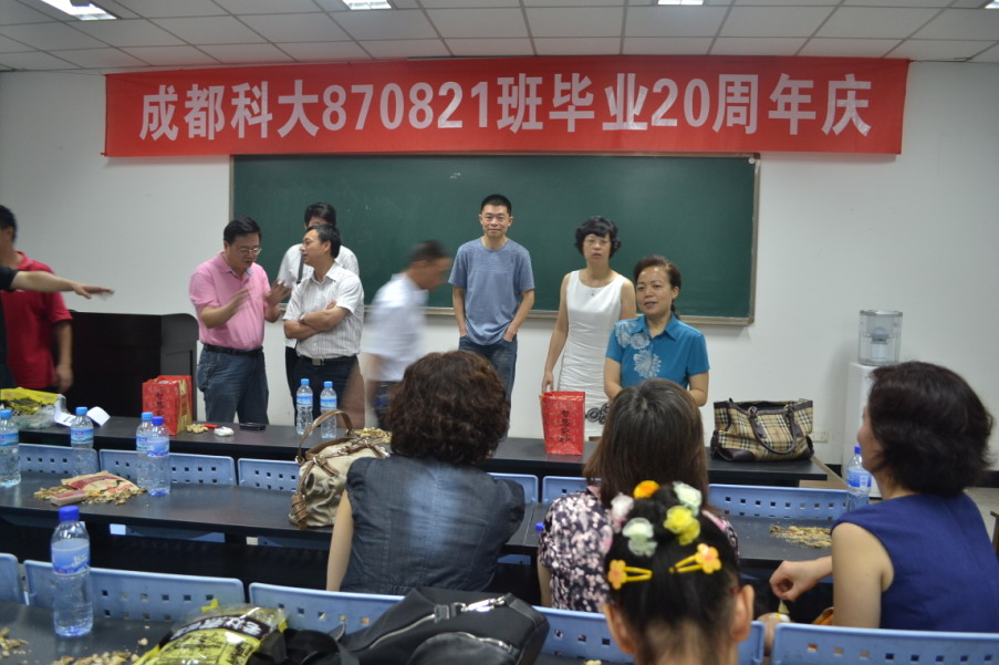 电气信息学院(原成都科技大学计算机及自动控制系)870821班20余名校友于2011年7月2日返校,举行了隆重的毕业20周年同学会。上午10点,同学会在基础教学楼JC-B206召开。