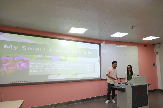 随后,国际周交流营的学生们以“My Green Life, My Smart Life”为主题,带来了一场精彩纷呈的报告展示。他们通过生动多样的形式,从衣、食、住、行等多个方面,展示了中外文化在绿色生活与智能科技方面的独特见解与创意实践。这些报告不仅展现了学生们扎实的学术功底与对生活细致的观察力,更促进了中外文化的深度交流与融合。