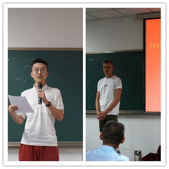 学生代表王子康同学也进行了发言,他为交流学生介绍了成都特色景点、特色文化、特色美食,还包括国际课程周的一些活动安排等。
