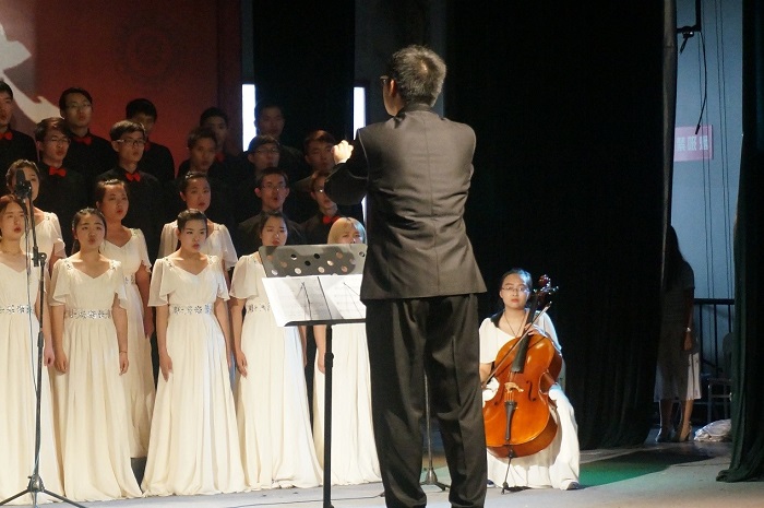 5月12日上午,合唱队进入艺术学院剧场并进行初步走场彩排。13:00许,合唱队再次集合并进行赛前准备。比赛于14:30如期举行。当主持人念到“有请三号代表队——电气信息学院为大家带来歌曲《菊花台》”,悠扬的旋律便在剧场中萦绕。钢琴与大提琴的伴奏声中,浓情的歌声将观众的思绪带入到一种缥缈的相思境中。曲终,台下响起热烈的掌声与激动的喝彩声。比赛结束,主持人宣读获奖名单,电气信息学院获得三等奖。