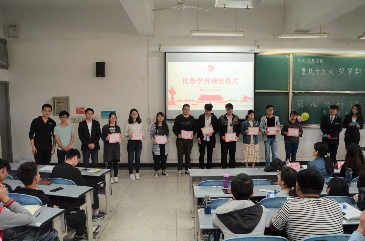 下午16时,团校第四次行课圆满结束,结业典礼正式开始。学院团委副书记汤博老师向团课优秀学员颁发优秀学员获奖证书,并与他们合影留念。优秀学员代表魏城铖同学上台发表课堂感悟与心得体会,充分反映了广大学员的心声。