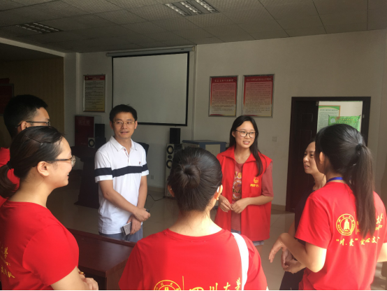 在光明社区,戴婷婷老师对支教队的工作情况做了充分了解,并认真分析了支教工作中的重点难点,叮嘱各位同学认真对待社会实践,在实践期间注意自身与孩子们的健康安全问题,确保支教工作的顺利开展。在星月社区与寺圣社区,戴婷婷老师代表学院老师对“川爱”支教队的工作做出了充分肯定,表扬了支教队员在有限条件下的所取得的工作成果,鼓励支教队成员再接再厉,努力让自己和留守儿童的暑期生活更加精彩。下午,老师一行来到了机场路社区与九龙湖社区,询问了支教点位的物质供应与教学设备情况,叮嘱支教队成员要把“川爱”精神延续下去,要把“川爱”活动扩展开来。