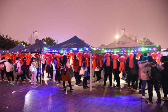 晚19时,火影灯谜大会在温馨愉悦的气氛中拉开帷幕,吸引了众多来往学生驻足观看、亲身参与。夜幕悄悄降临,火红的灯笼一一亮起,化作青春广场上一片独有韵味的风景,每个灯笼下都挂着灯谜纸条,灯谜涉及语文、历史、地理与生活小百科等多个方面,内容丰富,难度各异。同学们时而轻声读题,时而认真思考;时而踌躇犹豫,时而会心一笑。气温虽然较低,但却丝毫没有影响大家的参与热情,现场热闹而不失秩序,核对答案与领奖处排起了长长的队伍。晚21时,活动圆满结束。