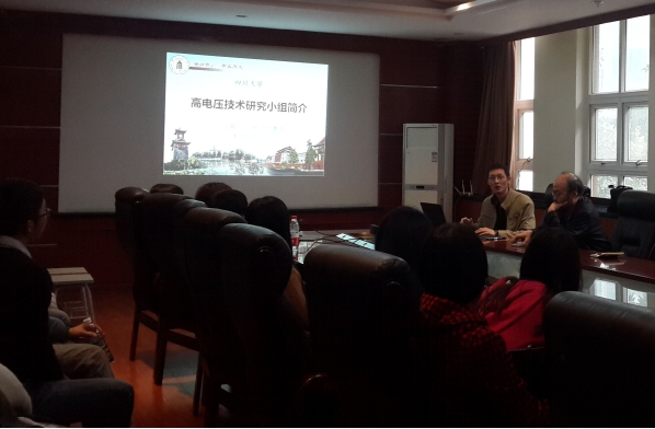 周凯教授在会议室给同学们讲解高电压实验室的基本情况