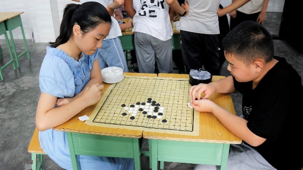 下午是各班每个教学周的例行班会。各班班主任首先讲了最近班里各方面的情况,然后下发了教学调研问卷,问卷内容是同学们对各科课程的评价,对各科老师的评价,以及对课程的建议等。同学们认真地填写了这份问卷,这对于红旅团队之后课程的改进有很大的帮助。问卷填写结束后,各班就开始了形式多样的活动,一班举行的是“棋王争霸赛”之五子棋比赛。现场赛况激烈,学生的情绪也十分高涨。三班同学则自导自演了一个情景剧,部分红旅队员也受邀参加了演出,现场掌声、笑声、欢呼声不绝于耳。