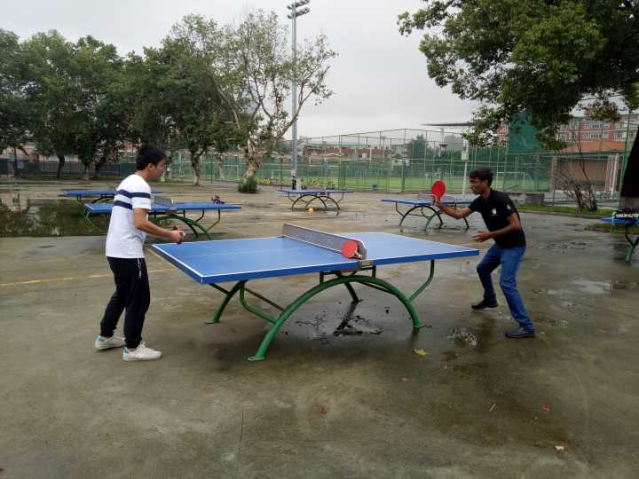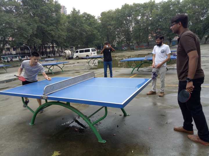 学生便邀请他们进行一场乒乓球交流比赛,在体育锻炼的同时,促进中外文化的交流。