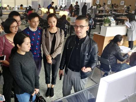随后,在学生活动中心二楼,王涛副处长对成都大学双创服务中心进行了详细介绍,对于这个楼层的功能分区以及成功孵化运营的创业项目一一进行了展示。如专注为大学生量身定制培训项目的菁蓉(创业)学院,关注幼儿早期教育的韬慧教育,中英圣地银器珠宝设计学生创业基地以及动漫虚拟实训中心等。