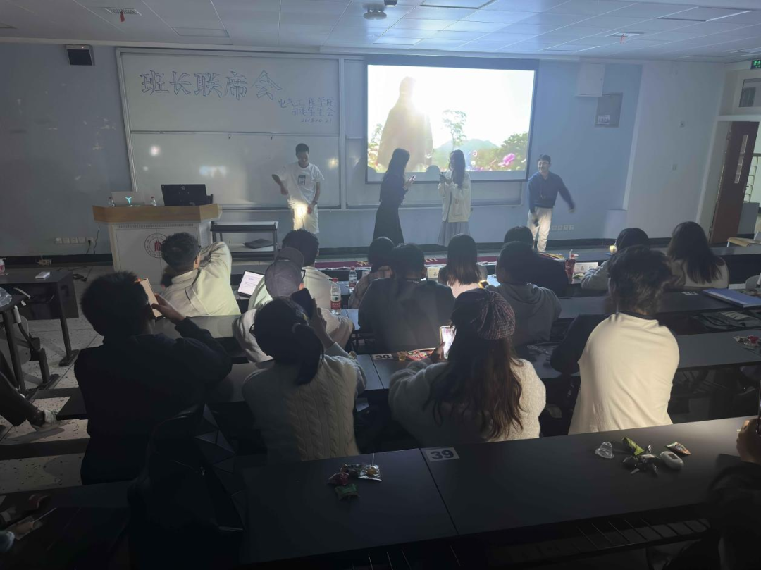 随后,2023级各位班长依次上台分享班级活动的经验,交流未来工作展望,从不同的角度讲述了各自的见解。自我介绍环节后,各班班长与团支书分组进行了才艺表演。