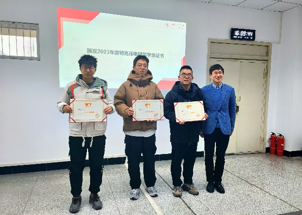 2023年度特高压电网奖学金表彰决定,并代表学院向张颢严等10位荣获本年度特高压电网奖学金的优秀学生表示祝贺。