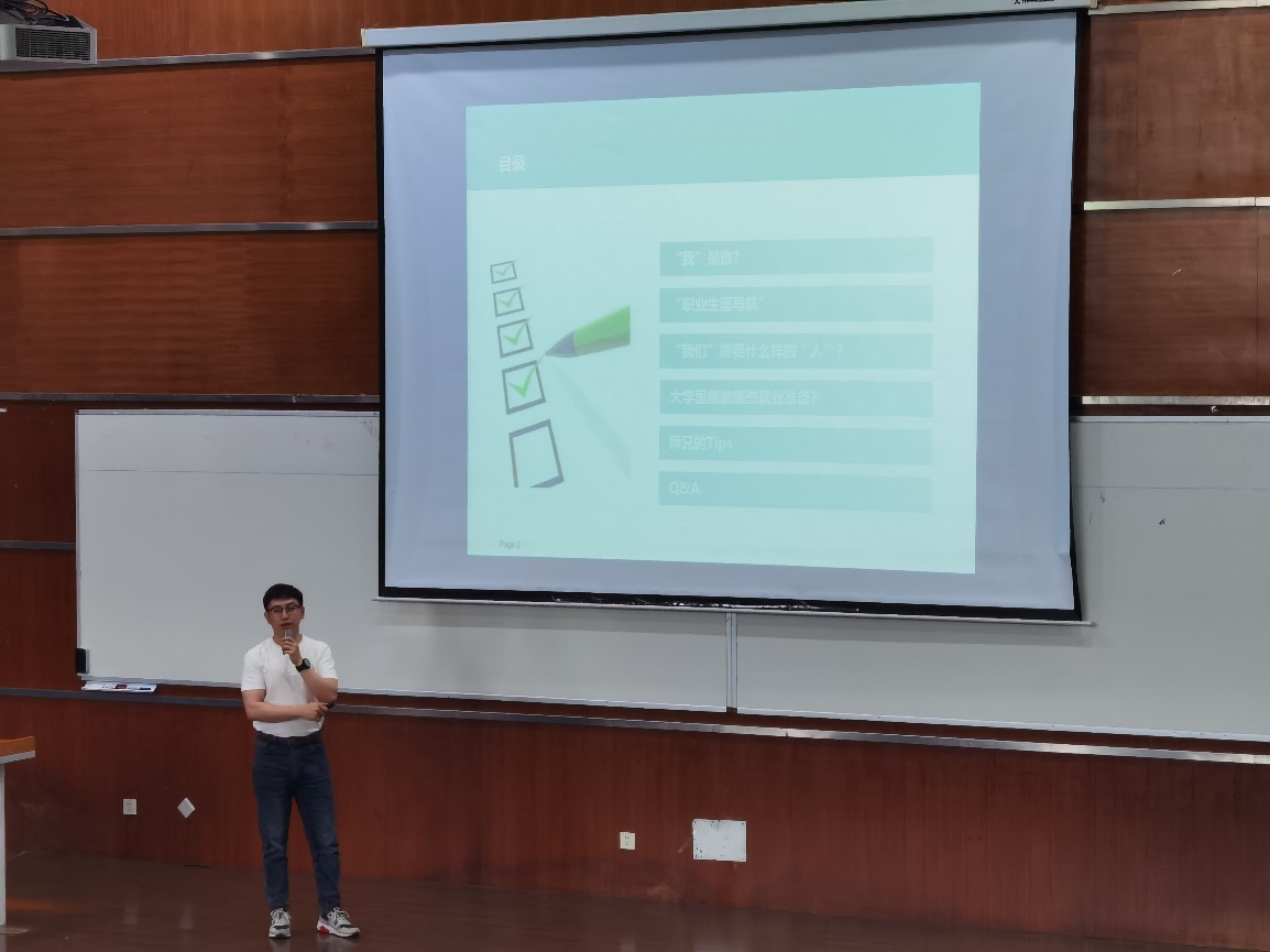 2023级本科生专职辅导员杨龙杰首先向同学们介绍了袁捷和钱勇两位嘉宾,并对他们的到来表示热烈欢迎。