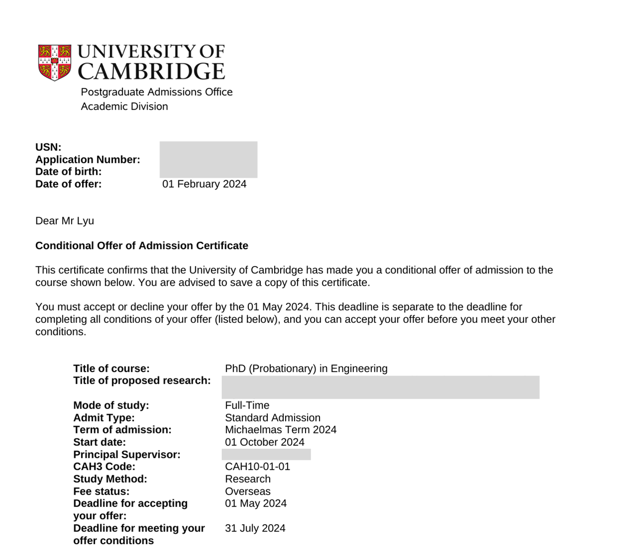 第十五届优秀学术之星、研究生国家奖学金、一等学业奖学金(两次)等多项荣誉和称号。科研实践方面,负责为团队搭建电池退化实验台,采集锂电池退化数据集,并设计可解释的健康状态评估和剩余使用寿命预测方法,以第一作者发表SCI论文5篇。目前已获得剑桥大学博士offer。