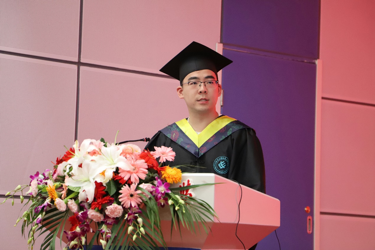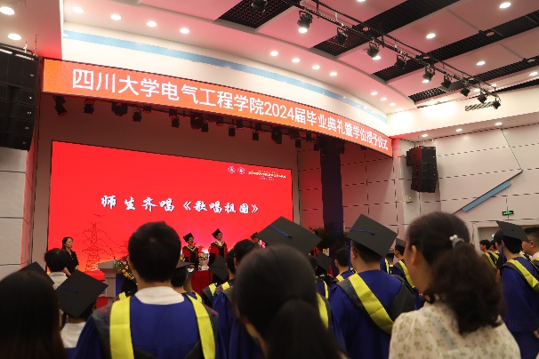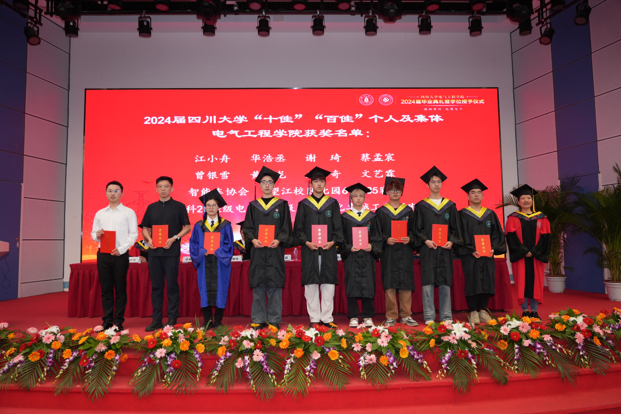 2024年十佳学生获得者,2020级本科生江小舟同学代表毕业生对学校、学院和老师们表达感谢和敬意。回顾大学四年时光,江小舟感慨道:正是坚持与毅力,使同学们在求知的道路上始终脚踏实地,即便面临困境与挑战,也心怀希望,毫不退缩地向前迈进。大家怀着对专业的深厚热爱,携手并进,在风雨中相互鼓励,也收获了真挚的友谊。他号召同学们,共同铭记作为川大电气人的家国情怀,不忘初心,始终坚守自己的理想与信念,在未来的人生赛道上披荆斩棘,奋力奔跑,不负时代,不负韶华,再相见时能以优异的成绩骄傲地向母校报告!