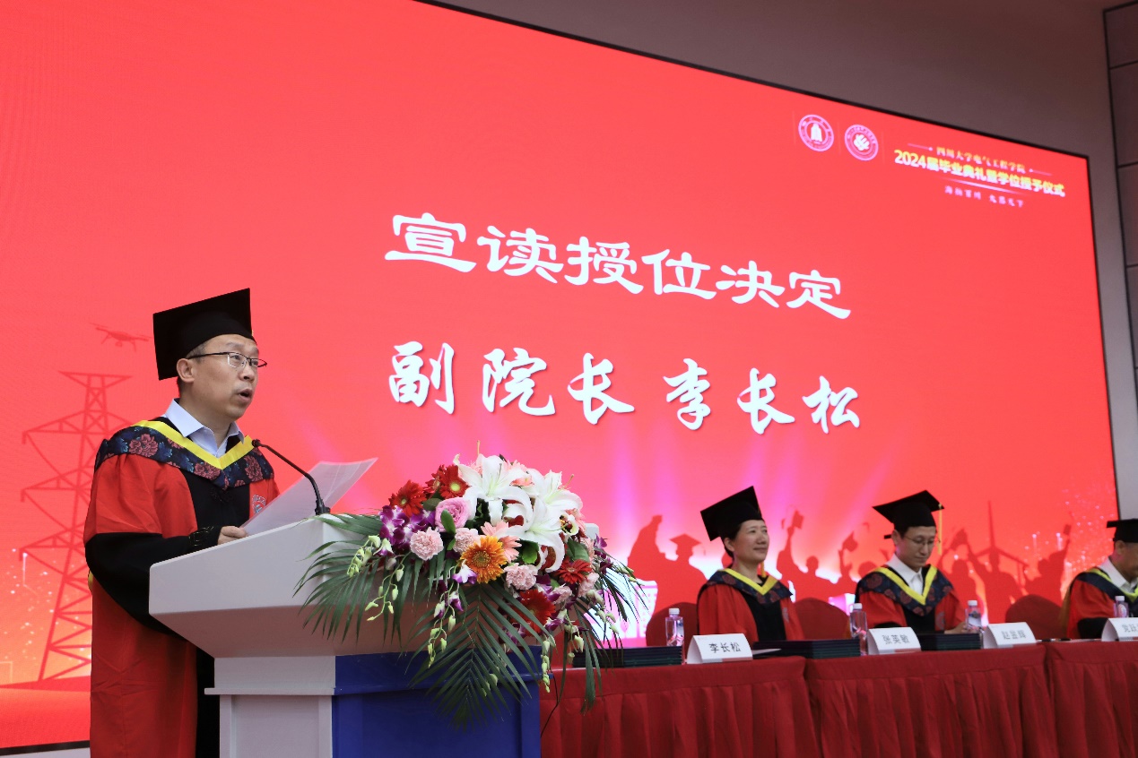 党委书记赵昱辉、院长肖先勇,副书记张英敏、戴婷婷,副院长李长松,教授代表贾申利、电气工程系主任王渝红、自动化系主任赵涛,以及2024届毕业生和学生家长代表参加了毕业典礼。典礼由戴婷婷副书记主持。