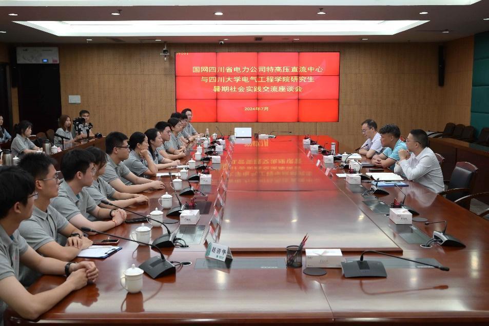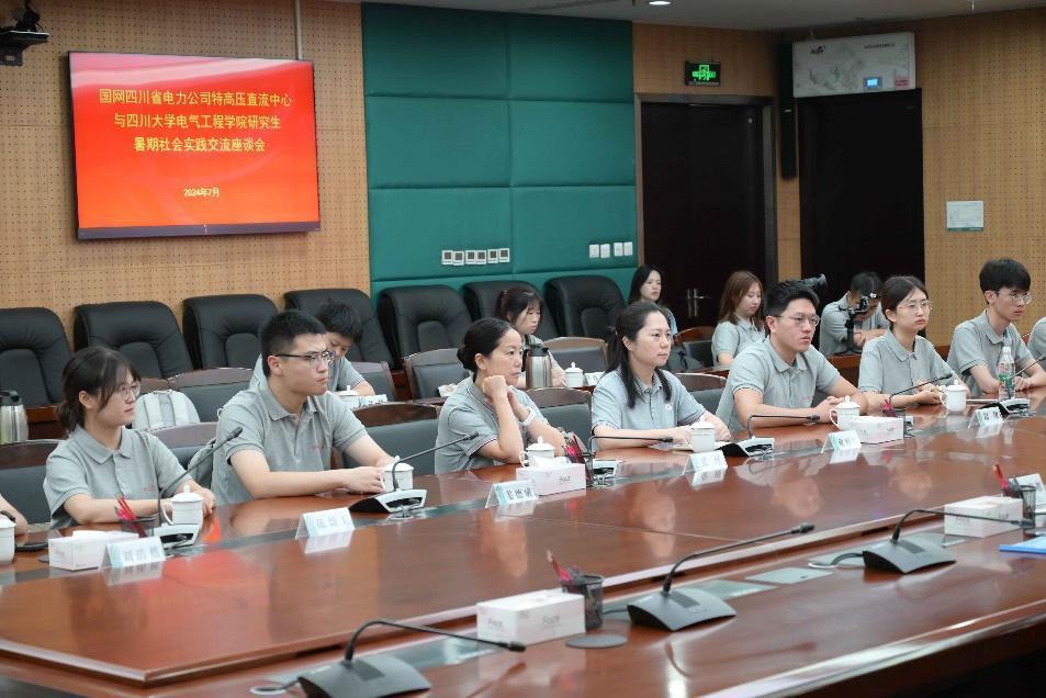 “‘电’燃红心,梦想‘企’航”社会实践团一行来到国网四川省电力公司特高压直流中心进行走访交流实践活动。国网四川省电力公司特高压直流中心于2022年1月成立,主要负责四川超特高压直流换流站、接地极的生产运营及直流新工程生产筹备工作,安全驾驭全球标准最高、技术最先进、专业全覆盖的特高压直流集群,同时在宜宾设有直流培训基地,可开展特高压直流运维和直流二次专业相关培训。