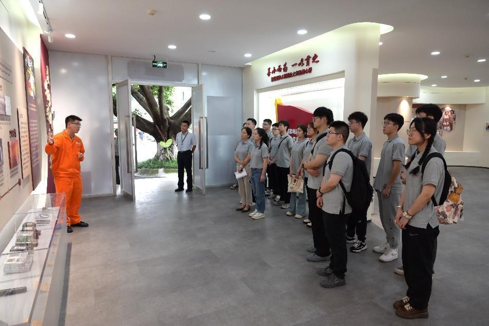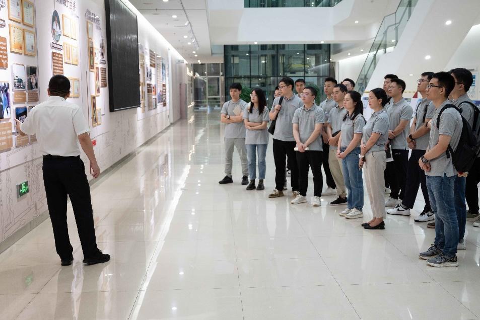 活动开始,国网四川电科院党委组织部(人力资源部)副主任林瑞星热情地接待了到访老师和同学们,并带领大家参观了“以奋斗者为本”文化墙。林瑞星讲述了电科院的发展沿革,并重温习总书记2023年7月在考察南瑞集团的谆谆嘱托——“要立志高远、脚踏实地,一步一步往前走,以十年磨一剑的韧劲,以‘一辈子办成一件事’的执着,攻关高精尖技术,成就有价值的人生”。