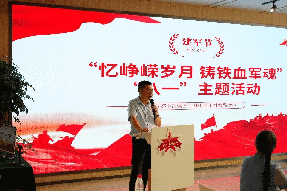 在八一建军节当天,实践团成员跟随成都高新“连心桥”共产党员服务队参与玉林北路社区“忆峥嵘岁月,铸铁血军魂”“八一”主题活动,向退役军人送去节日的问候和祝福。
