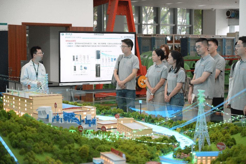 紧接着,实践团一行跟随系统技术中心一级科研员史华勃的脚步,走进了“中小型变速抽水蓄能运行控制及多能互补技术验证”国网公司实验室。四川水电、新能源资源丰富,依托国家重点研发计划项目,电科院建立起“中小型变速抽水蓄能运行控制及多能互补技术验证”实验室,是国内唯一全功率变速抽蓄、水光蓄多能互补现场验证平台,填补了国内空白。通过沙盘模型和专业讲解,老师和同学们了解了实验室发展历史和研究定位,并对于抽蓄技术和实验验证机理有了深层次的理解,深切体会到实际工程项目所要求的实用性、可靠性。