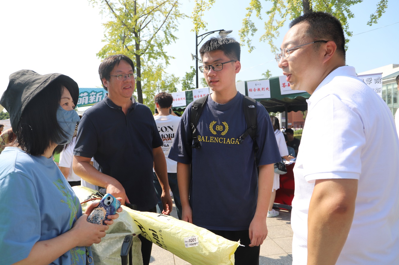 迎新点位,看望2024级新生和家长,详细了解学院迎新工作开展情况,慰问参加迎新的工作人员和志愿者。