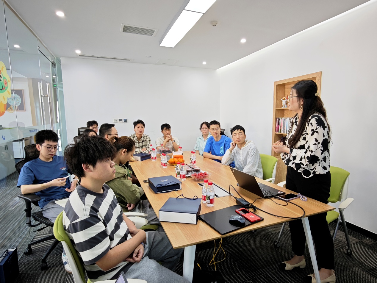 在海成科技人才战略发展中心李颖霞引导下,师生一行参观了公司办公区,通过宣传片与研发中心负责人吴江龙的讲解,深入了解企业核心技术及智慧交通领域创新成果。随后,双方分设双会场展开深度交流:教师团队与海成科技董事长徐川、总经理周勇等围绕智能制造设备、智能机器人系统等潜在合作项目展开研讨;学生代表则聚焦职业竞争力构建,就学历与技能侧重、技术变革应对等话题与人才战略发展中心互动。