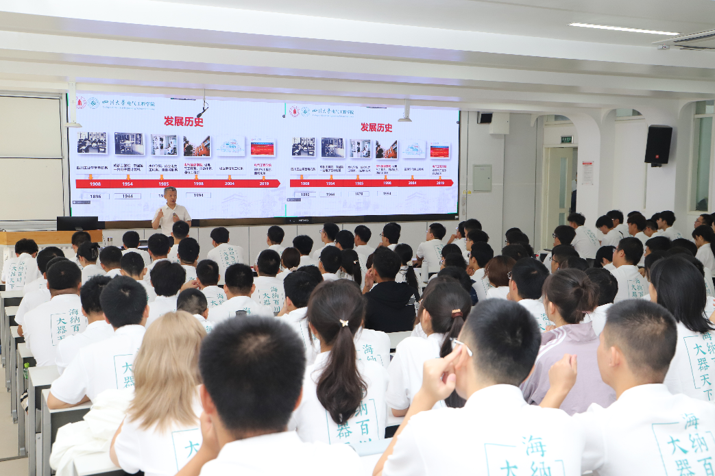 和川大电气的发展历史,讲述了优秀川大人代表的感人故事。他希望同学们作为新时代川大人,都能秉承川大精神,放大精彩人生,尽快完成从中学生向大学生的转变,都能努力实现从优秀向卓越的迈进。赵书记以视野眼界、深度思考、合作共享、刻苦认真四个关键词寄语新生,他说,未来三十年,是同学们人生奋斗的黄金时期;到本世纪中叶,同学们将成为各行各业的中流砥柱,希望大家在大学期间都能德智体美劳全面发展,努力成为担当民族复兴大任的时代新人。