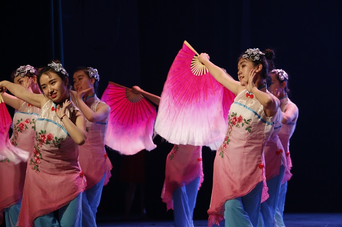 幕布拉起,灯光骤息,四位主持人在迷幻的灯光中闪亮登场。青春蓬勃的背景音乐点燃了所有人的热情,主持人致辞过后,晚会正式开始。铿锵有力的《中华武魂》、相声《滑稽之声》的说学逗唱各有千秋,魔术表演的手法令人捉摸不透,斑马乐队鼓与吉他的节奏敲打之音动人心弦……每个节目都精彩无比,全场观众为之喝彩。