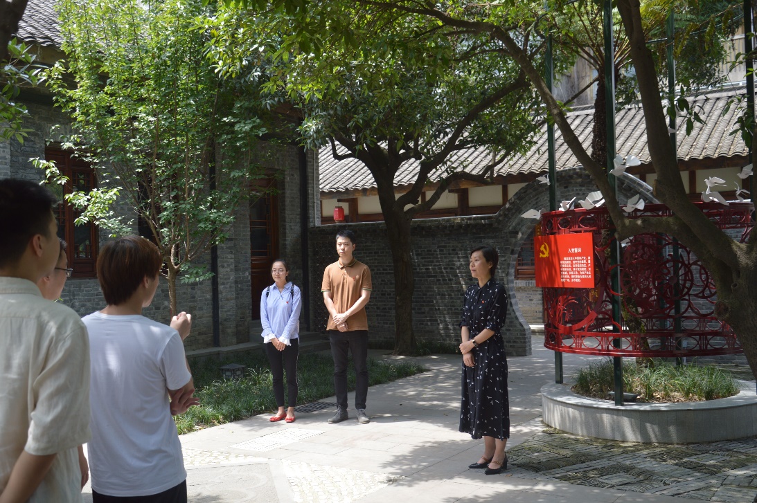 活动伊始,韩芳书记代表学院党委对各位新发展党员表示祝贺,希望他们牢记入党誓词,始终不忘初心,时刻以一名党员的标准严格要求自己,在各方面发挥先锋模范带头作用。之后,在胡劼老师的领誓下,全体新发展党员同学进行了入党宣誓。随后,伴着讲解员的解说,同学们回顾了革命烈士江竹筠的一生。纪念馆根据江姐的生平经历设计展区,还原江姐当年的生活场景,展示了江姐在MX动漫