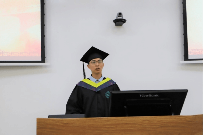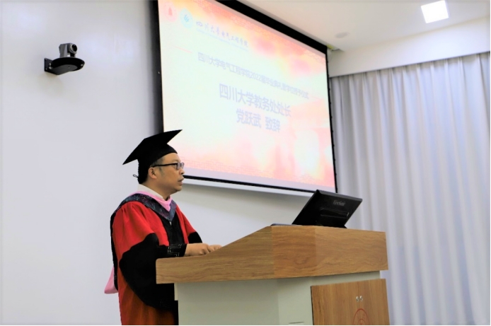 随后,2018级电气工程及其自动化卓越工程师班本科生刘新霆同学作为毕业生代表发表毕业感言,他表示拼搏是青春的底色,在学校的奋斗经历构成了同学们青春时代最美好的篇章。同时川大的“海纳百川”也激励他们不断拓宽视野,不仅要埋头苦干,更要学会拓宽思路,多学科交叉融合。最后,他代表毕业生感谢老师的授业解惑,并表示将传承川大电气人的求真和担当,不忘初心,不负时代。