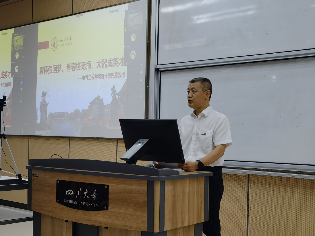 的追求和信任。演讲中,周同学分享了三个方面的内容与新生们共勉。一是不随波逐流,而是积极探索,借助川大广阔的视野与平台发展自己。二是不冷漠麻木,保持内心的善良与同情。她以河南暴雨中挺身而出的校友孙立志为例,表达了对勇敢、赤忱的川大电气人的钦佩与欣赏。三是不颓废消极,勇敢地扛起青年担当,勇于奋进。