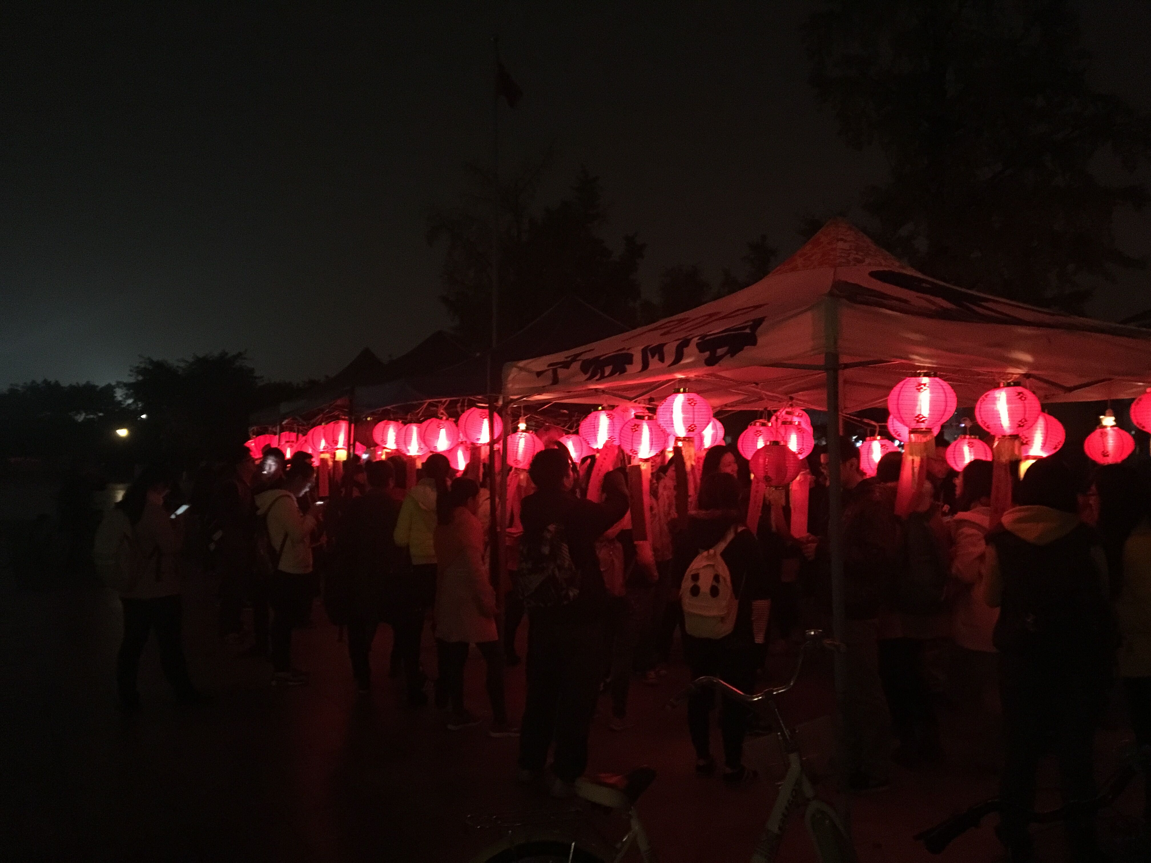 夜幕降临,青春广场电气信息学院摊位前亮起连串的红灯笼的微光,每个灯笼下都挂着灯谜纸条,灯谜涵盖了语文、历史、地理和生活小百科等领域,内容丰富,难度各异。伴随着舒缓的乐曲,同学们饶有兴致地思索灯谜答案。活动现场虽然气温较低,但前来猜灯谜的人络绎不绝,饱含热情,聚集的同学越来越多。主办方准备的小礼品增加了同学参与的积极性,更增添了活动的乐趣,现场气氛轻松而活跃。