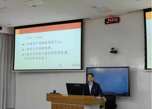 党委组织部部长汪朝清带领同学们深入学习了题为《正确认识党的性质》的党课。汪老师从理论、历史、实践三个维度详细阐释了为什么中国共产党是中国工人阶级的先锋队,同时也是中国人民和中华民族的先锋队。汪老师特别指出,中国共产党自诞生以来,就把为中国人民谋幸福,为中华民族谋复兴作为自己的历史使命,中国共产党始终代表中国最广大人民的根本利益,让同学们进一步认识了党的性质,更深层次理解了党的宗旨和最终理想目标。