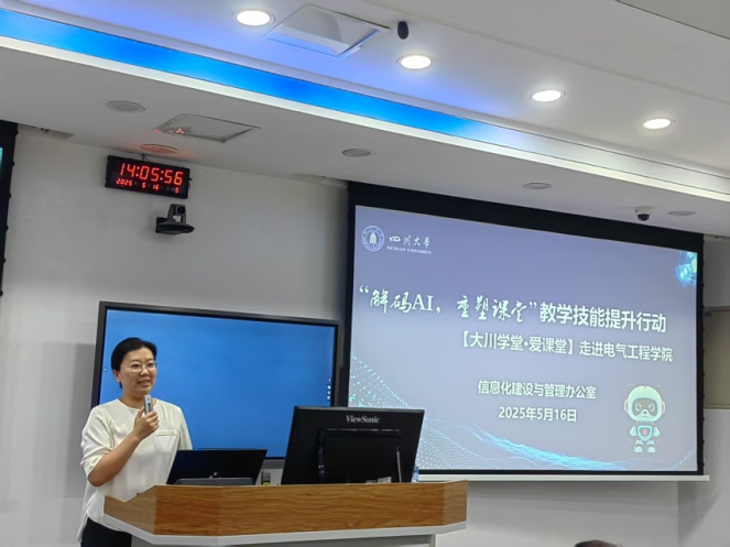 李长松副院长首先介绍了本次培训会的背景和目的。他指出,随着AI在教育领域应用日益广泛,AI正成为推动教育创新的重要力量。学校适时出台《人工智能深度赋能一流本科建设行动计划》,鼓励师生以“人工智能+”赋能教育助力本科教育教学全要素建设,不断推进基于“人工智能赋能—创新使能—改革善能”的本科人才培养。结合学院零周工作会提出的专业核心课程数字化资源建设专项,学院邀请大川学堂、学习通和雨课堂三个在线平台介绍最新应用,助力所有专业、所有课程、所有课堂实现AI应用全覆盖,不断探索AI赋能的学习范式、教学方式与培养模式的新路径新方法,为学院人才培养高质量发展贡献力量!