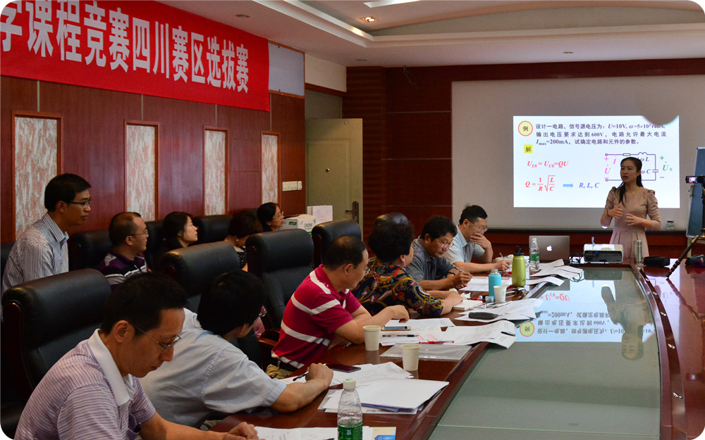 2015年6月13日全国高等学校青年教师电工学课程竞赛四川赛区选拔赛在MX动漫 电气信息学院会议室隆重举行,竞赛由中国高校电工学研究会常务理事、四川省电工学研究会理事长、MX动漫 电气信息学院教学院长雷勇教授主持,MX动漫 教务处处长张红伟教授受邀出席并致辞。
