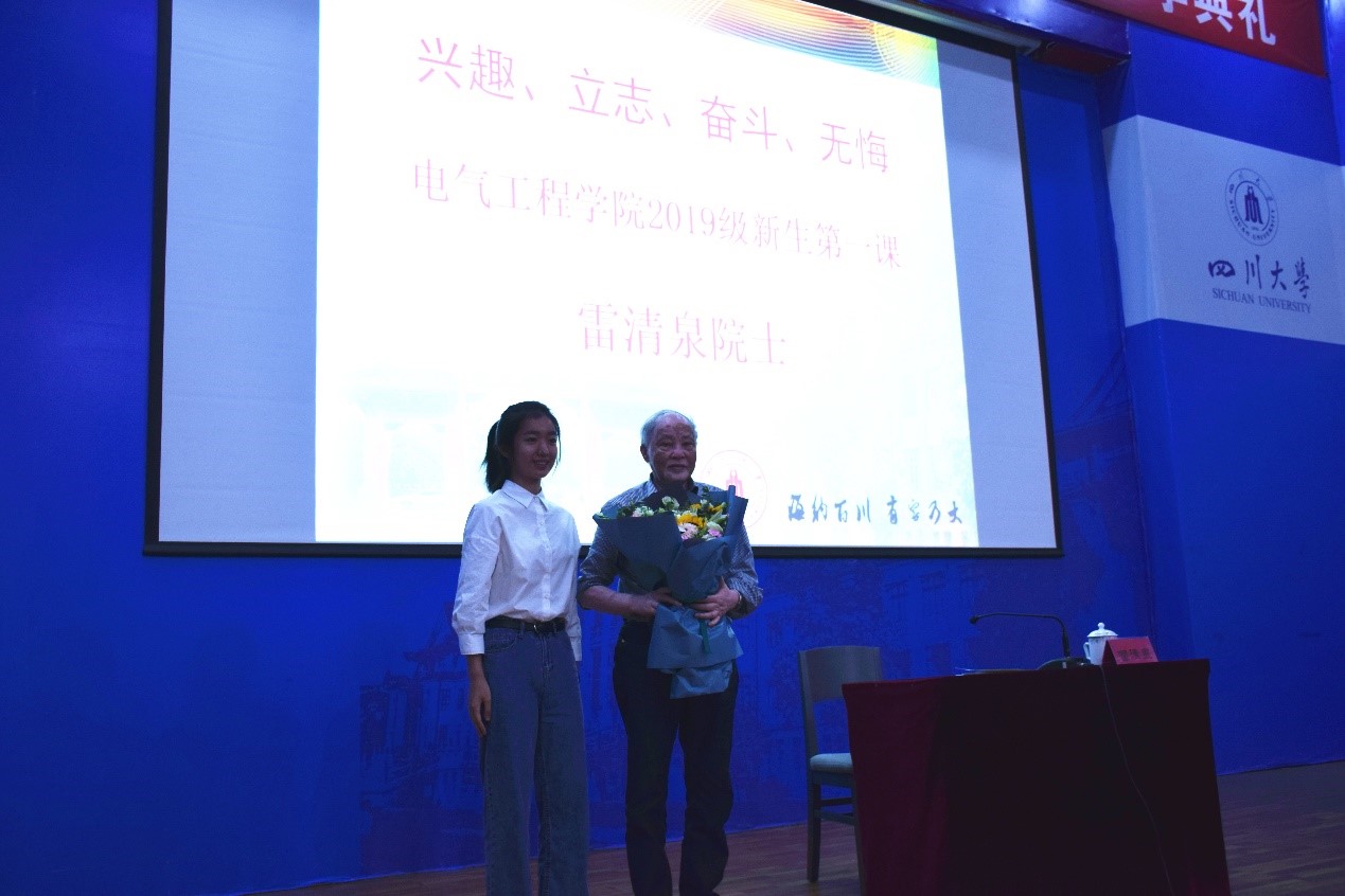 新生代表向雷清泉院士敬献了花束,祝福雷院士身体健康。