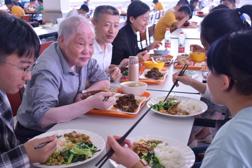 随后,雷院士与新生们在学生食堂共进午餐,与大家交流大学生活。同学们十分珍惜与雷院士交流的机会,纷纷与雷院士畅聊自己对大学的看法。对于新生提出的问题,他逐一耐心解答,现场其乐融融。