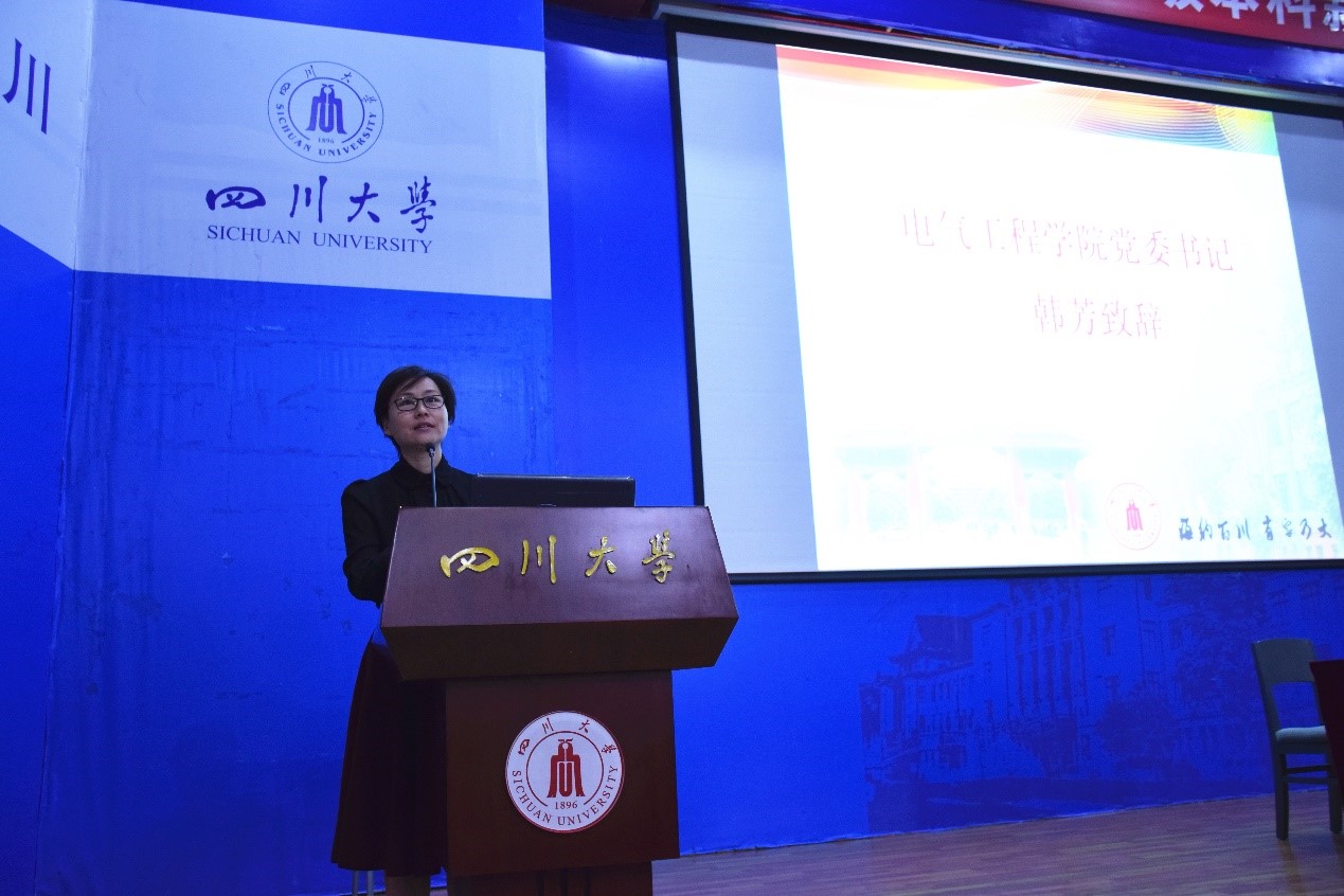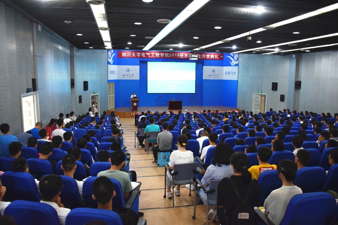 2019级本科新生开学典礼在江安校区水上报告厅隆重举行。中国工程院院士雷清泉教授、学院党委书记韩芳、院长肖先勇、学院党委副书记兼纪委书记张英敏、学院党委副书记戴婷婷、副院长李长松、院长助理李成鑫、电气工程系主任王渝红、副主任曾成碧、电气工程系第一党支部书记赵莉华、副书记刘亚梅、自动化系主任佃松宜、副主任曾晓东、自动化系党支部书记刘念、电工电子基础教学实验中心主任周群、电工电子基础教学实验中心党支部书记梁斌、专业实验中心主任肖勇、专业实验中心党支部书记冉立等院系领导,博士生导师代表周凯、刘凯、王为老师,新生班主任邱晓燕等老师、学院教导员李小根老师、新生辅导员老师等出席了本次大会。大会由学院党委副书记戴婷婷主持。