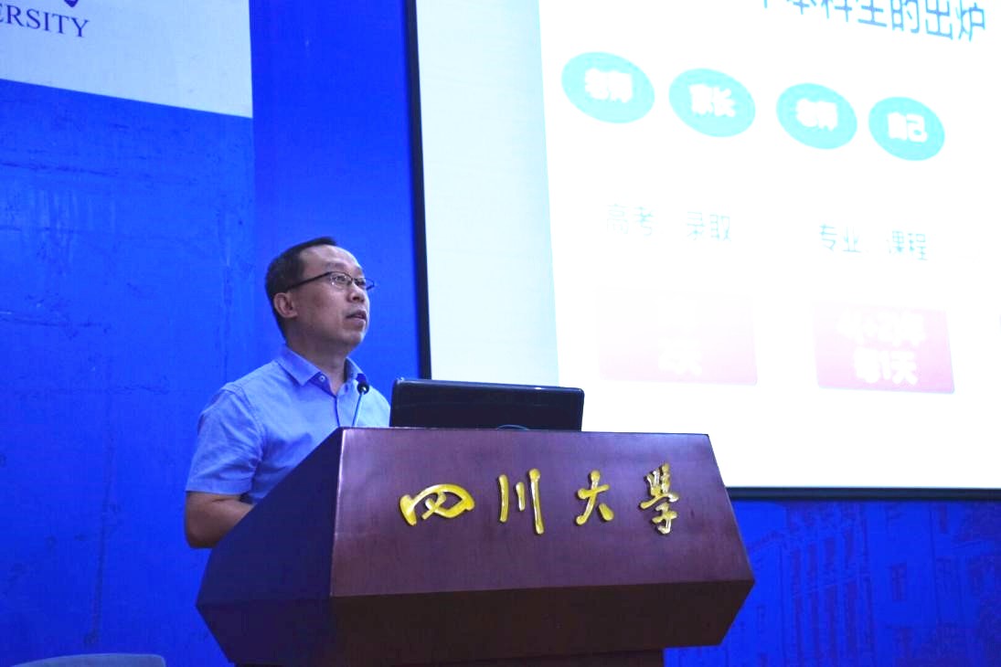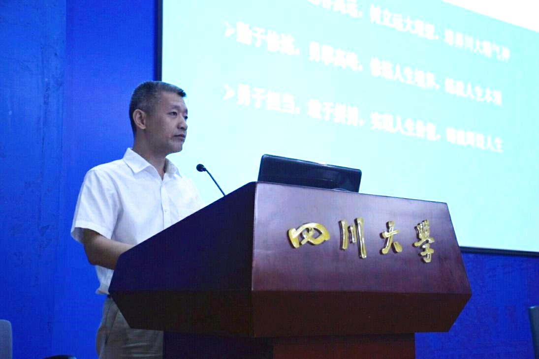 历史悠久、底蕴深厚,拥有一流的办学条件和平台,培养了一大批杰出校友。学院将秉持“以办最好本科为宗旨,以学生发展和教师发展为中心”的办学理念,实施最好本科2.0十大行动计划,全面推进学科专业发展,提升人才培养质量。对于如何开启大学这段新旅程,他给新生们分享了三点建议:一要海纳百川,志存高远,树立远大理想,培养川大精气神;二要勤于修炼,勇攀高峰,境界能力双提升,练就真本领;三要勇于担当,敢于拼搏,实现人生价值,铸就辉煌人生。他衷心希望2019级新生能潜心读书,用知识武装自己,用实践锻造人生,爱川大,爱学院,爱专业,明确目标,砥砺奋斗,大器天下!