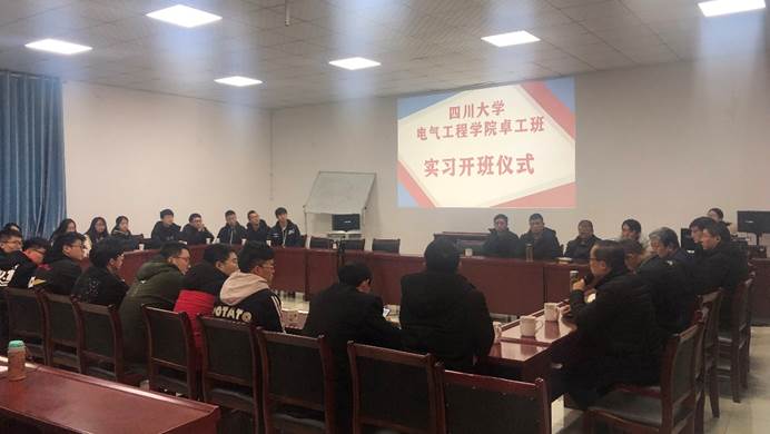 肖先勇院长、李长松副院长及电气工程及其自动化专业2016级卓越工程师班的同学们。聂在和董事长向在场师生们介绍了成都振中电气集团有限公司的基本情况、发展历程和实习条件,并希望卓工班的同学们能够在这为期15天的实习里有所收获。